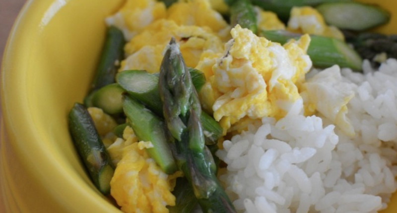 犬の手作りごはんレシピ。春アスパラの卵炒め。犬の食事に旬を取りれることで、犬の食の楽しみが広がります。作り方とレシピの紹介。