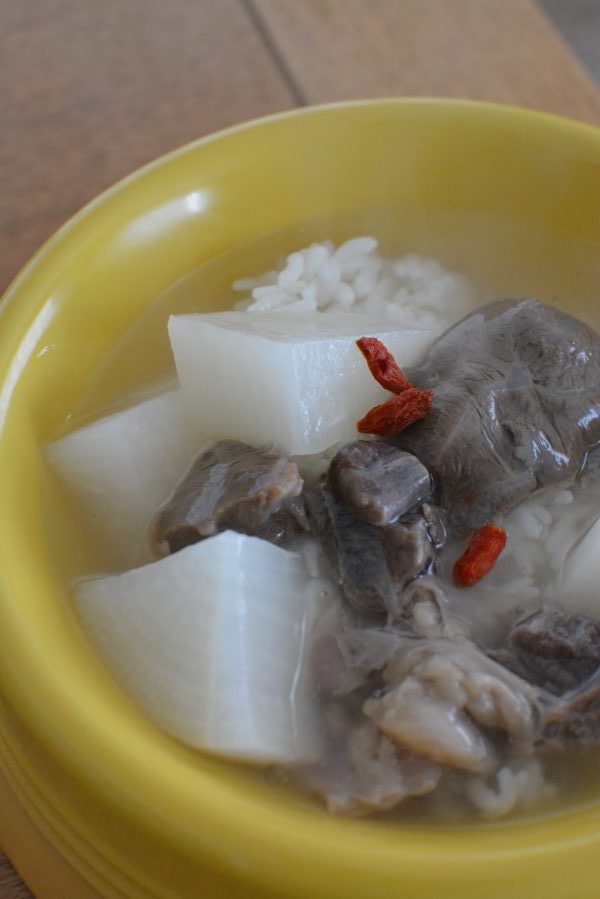 圧力鍋だと牛スネ肉も短時間で柔らかくなり、スープには牛スネ肉特有の旨味とコクがしっかり滲み出ています。昆布もちゃんと戻っています。