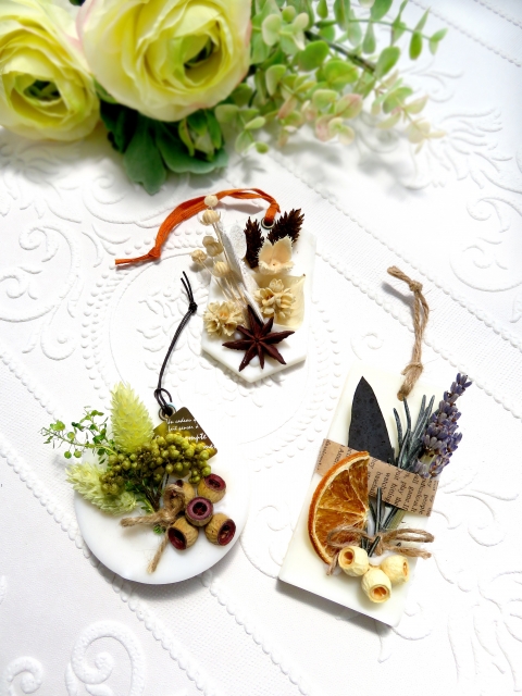 さらにこの石膏にドライハーブや精油そのものを練り込むと、アロマサシェになります。